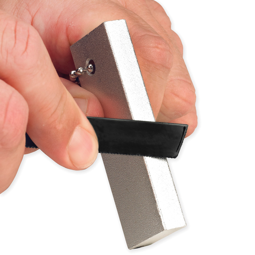 3″ x 1″ solid magnesium with flint. Approximately 3000 strikes. Serrated striker. Generates 5400° heat source. This is the perfect compact and lightweight fire starter for camping, emergency kits and more. Keychain for easy carrying. Starts fires even when wet! Hang packaged.