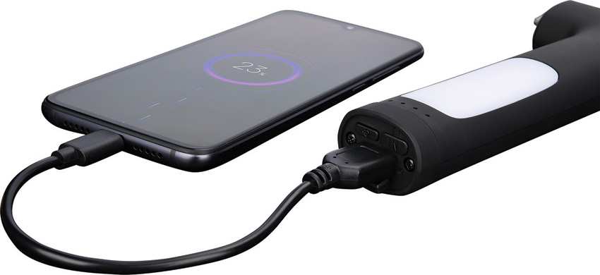 7.13″ overall. Tungsten steel breaker head. Belt cutter. White light illumination. Red light alert. Type-C charging. Black ABS handle. Requires (1) Lithium battery (included). Boxed.