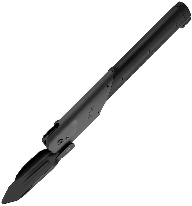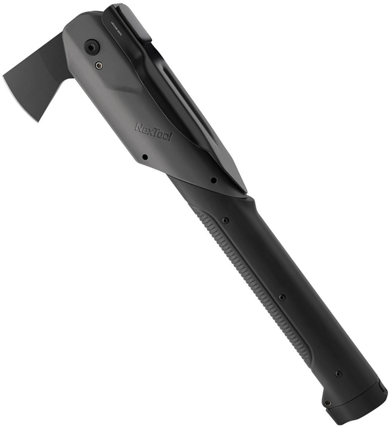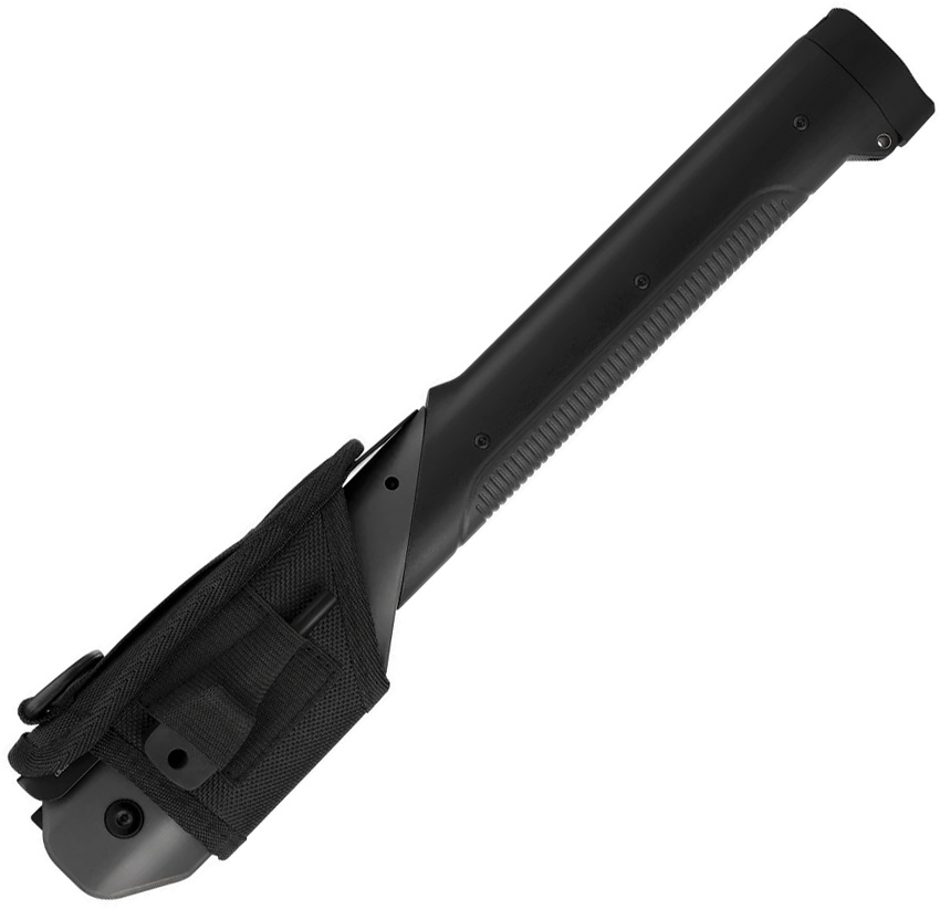 Dimensions: 2.44″ x 1.1″ x 14.25″. Black aluminum handles. Axe, shovel, and hammer. Safety lock. Folding knife with standard and saw blades integrated into handle. Fire stick. Black nylon pouch. Boxed.