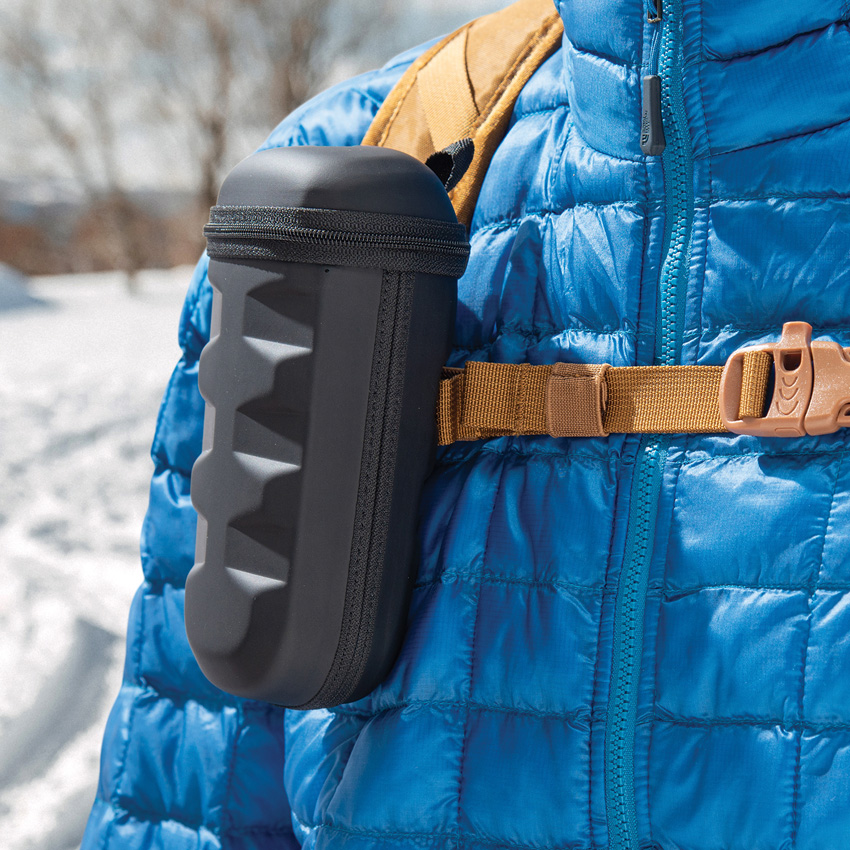 Rugged hardshell exterior with molded foam interior. Carabiner loop. Rugged clip attaches to waistbands and straps up to 2″ wide. Sewn-in 2.5″ x 12″ microfiber non-scratch lens cleaning cloth. Hang packaged.