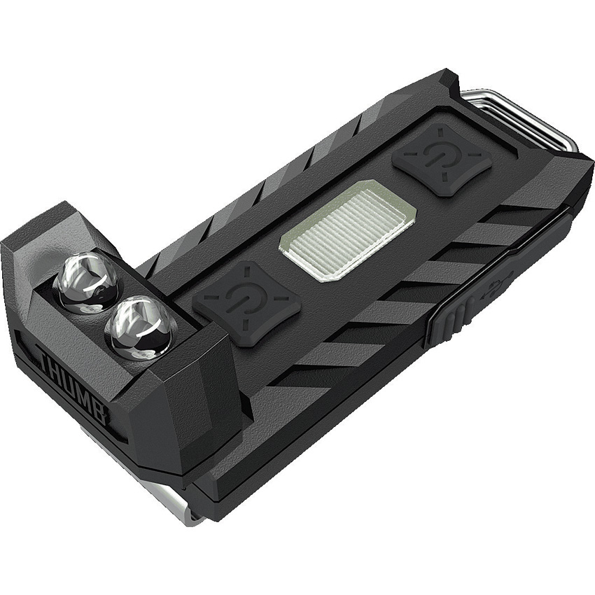 Dimensions: 3″; Color: Black; Battery: Lithium; Light Features: Keychain l LED l Rechargeable l Water Resistant l High: 85 Lumens for 22h; Other Info: White and red output. USB rechargeable. Integrated li-ion battery. Two performance LEDs. Direct access to red light/red flicker mode. l 120 degree adjustable angle lighting. Dual switch design for one-handed operation. Hang packaged.