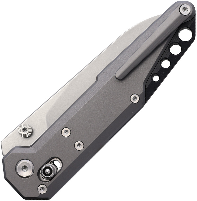 4.38″ (11.13cm) closed. 3.13″ (7.95cm) stonewash finish Bohler M390 stainless blade. Gray titanium handle. Pocket clip. Thumb stud. Lanyard hole. Storage case.