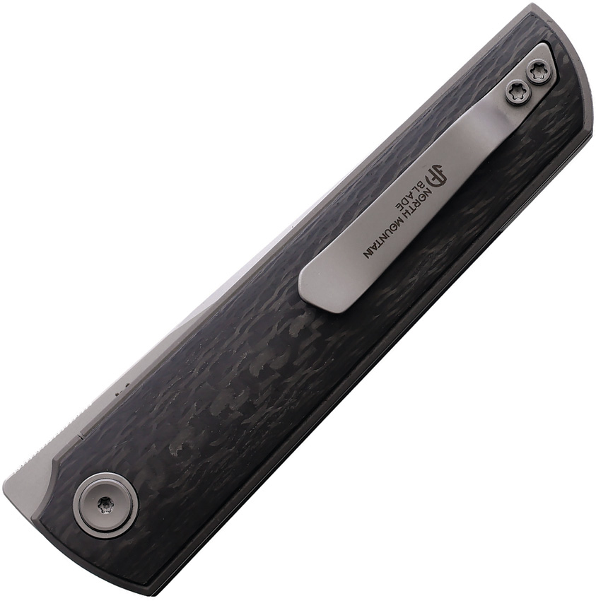 4.25″ (10.8cm) closed. 3.5″ (8.89cm) blade. 3K carbon fiber handle. Extended tang. Pocket clip. SLD-MAGIC steel clip point blade. Molded plastic storage case. Boxed.