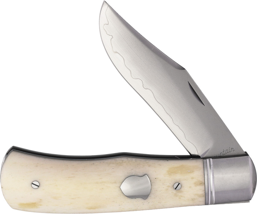 4.25″ (10.8cm) closed. 3.13″ (7.95cm) blade. Bone handle. Stainless bolster(s). Inlay shield. SLD-Magic clip point blade. Boxed.