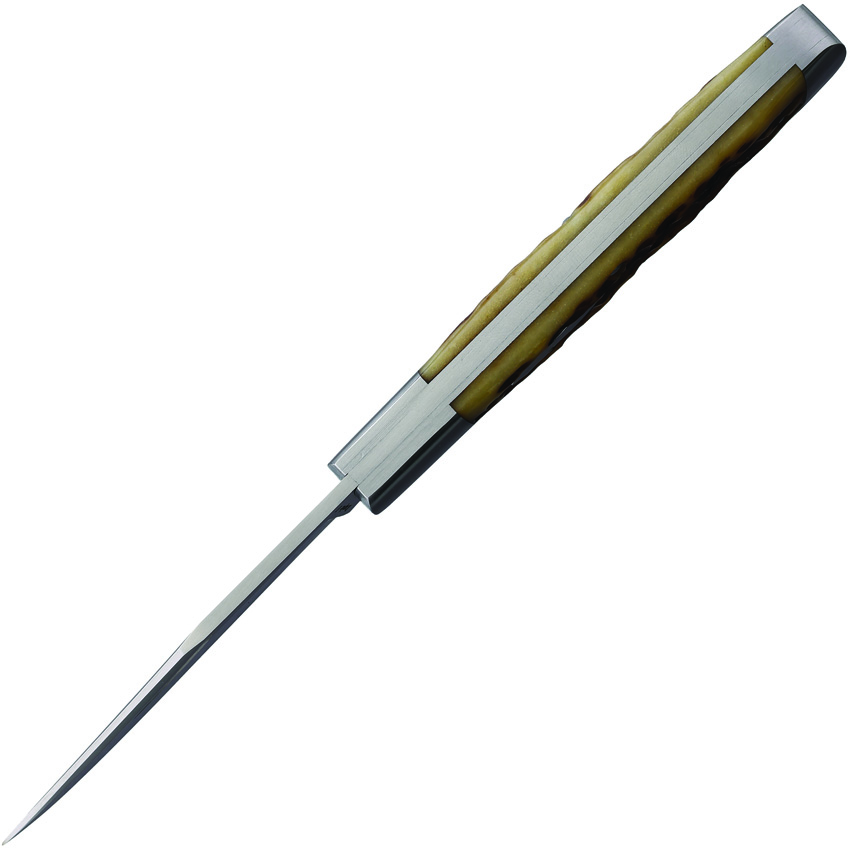 4.13″ (10.49cm) closed. Satin finish VG-10 stainless clip blade. Bourbon jigged bone handle. Nickel silver bolster(s). Inlay shield. Boxed.