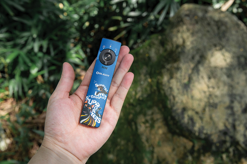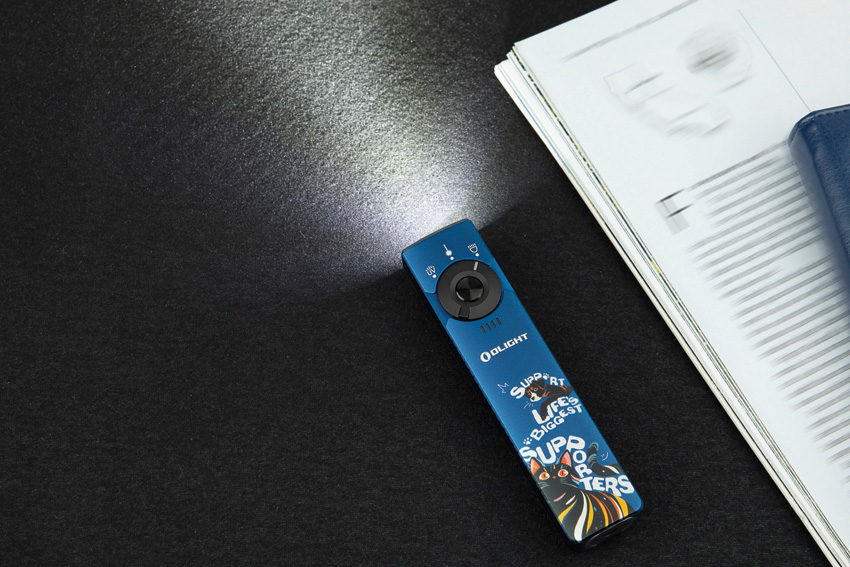 Dimensions: 4.72″ x 0.63″ x 1.06″. Water resistant. Impact resistant. Rechargeable. Strobe. Cool white LED. Green beam. UV light. Modes: Turbo (1300-420 lumens, 4+126m runtime); High (420-100 lumens, 135+12m runtime); Medium (100 lumens, 9h 45m runtime); Low (15 lumens, 55h runtime); Moon (1 lumen, 11 days runtime). MCC1A magnetic USB charging. 102m beam distance. Color: Paw Edition. Requires (1) Lithium battery (included). Aluminum construction. Boxed.