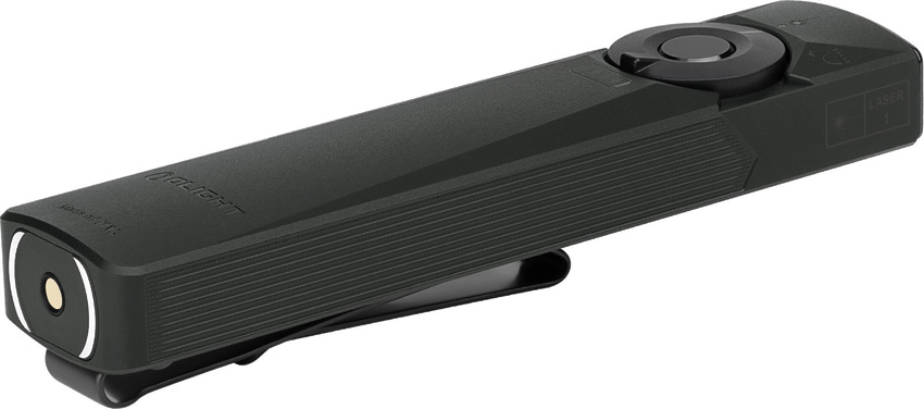 Dimensions: 4.72″ x 0.63″ x 1.06″. Water resistant. Impact resistant. Rechargeable. Strobe. Cool white LED. Green laser. UV light. Modes: Turbo (1400-420 lumens, 4+121m runtime); High (420-100 lumens, 135+12m runtime); Medium (100 lumens, 9h 45m runtime); Low (15 lumens, 55h runtime); Moon (1 lumen, 11 days runtime). MCC1A magnetic USB charging. 103m beam distance. Requires (1) Lithium battery (included). Aluminum construction. Color: Stealth gray. Boxed.