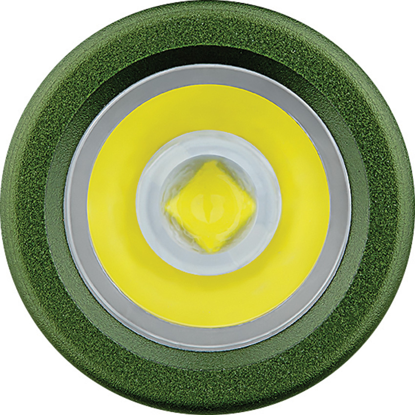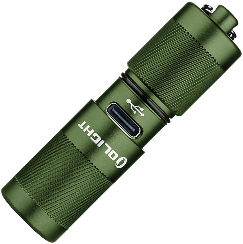 2″ overall. Water resistant. Impact resistant. Keychain. Rechargeable. High Performance Cool White LED. TIR optic lens. 48m beam distance. Modes: High (180 lumens, 23m runtime); Low (5 lumens, 12h runtime). USB-C charging cable. Requires (1) Lithium battery (included). Aluminum construction. Color: OD Green. Boxed.
