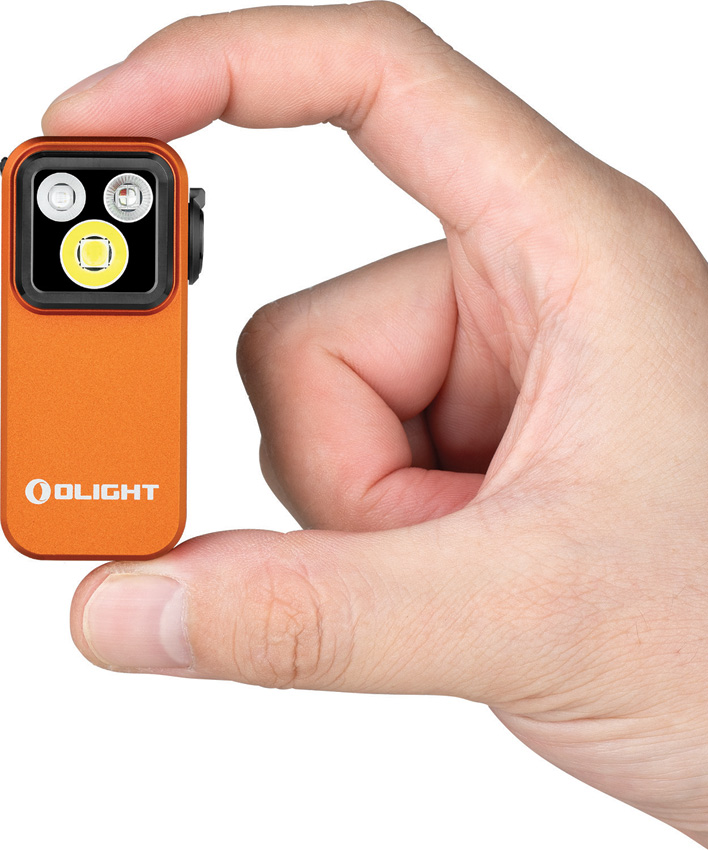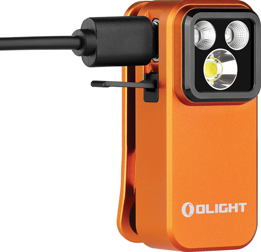 Dimensions: 2.25″ x 1.1″. SOS strobe. Strobe. Water resistant. Impact resistant. Clip. Rechargeable. Side switch operation. White and red LEDs. USB-C charging. 120m beam distance. Modes: Floodlight-Turbo (500-300-100 lumens, 1+50+30m runtime); High (300-180-100 lumens, 1+100+10m runtime); Medium (100 lumens, 3.5h runtime); Low (10 lumens, 27h runtime); Moon (1 lumen, 144h runtime); Spotlight-Turbo (380-240-85 lumens, 1+50+30m runtime); High (240-150-85 lumens, 1+100+10m runtime); Medium (85 lumens, 3.5h runtime); Low (9 lumens, 27h runtime); Moon (1 lumen, 144h runtime); Red (40 lumens). Glass lens. Requires (1) Lithium battery (included). Aluminum construction. Color: Orange. Boxed.