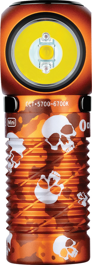 2.5″ overall. Water resistant.Impact resistant.Rechargeable.Strobe. Cool white LED and red LED. Modes: Turbo (1250-350 lumens, 2+60m runtime); High (500-350 lumens, 2+75m runtime); Medium (100 lumens, 4.5h runtime); Low (10 lumens, 30h runtime); Moon (2 lumens, 10 day runtime); Red light -High (45 lumens, 150m runtime); Low (5 lumens, 19h runtime). 155m beam distance. Includes: Magnetic charging cable, Headband, Headlamp base. Requires (1) Lithium battery (included). Aluminum construction. Color: Ghost Blaze. Boxed.
