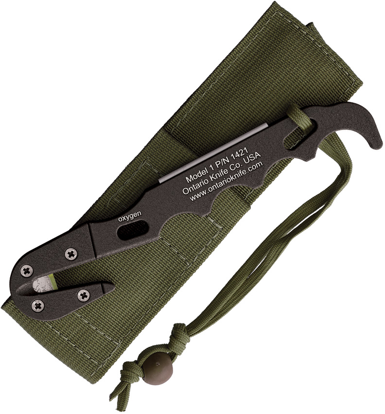 6.6″ (16.76cm) overall. Black aluminum handle. OD green nylon belt sheath.