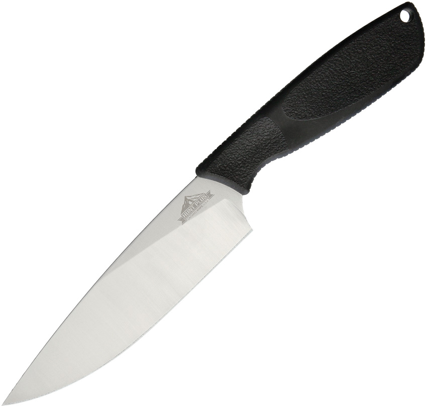 11.13″ overall. 6.25″ satin finish stainless drop point blade. Black rubber handle. Lanyard hole. Black nylon belt sheath. Boxed.