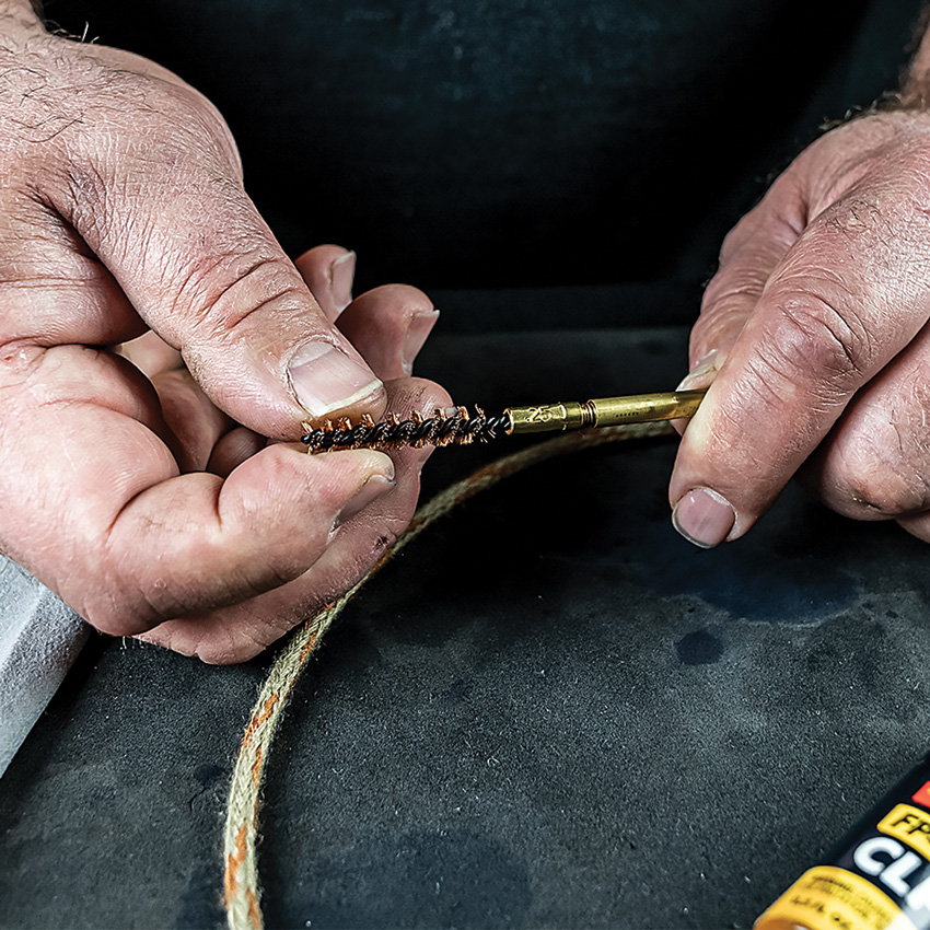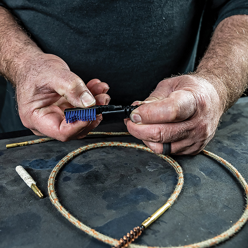 Includes: Ripcord plus caliber/gauge specific bore brush; Cotton bore mop; 0.5 fl oz bottle Shooter’s Choice FP-10 Lubricant Elite; Short AP brush that locks into notch of T-handle; Microfiber cloth. Cleans: .223 Caliber/5.56mm/5.7mm. Offers complete cleaning for field/on-the-go use. Heat resistant up to 700F. Hang packaged.