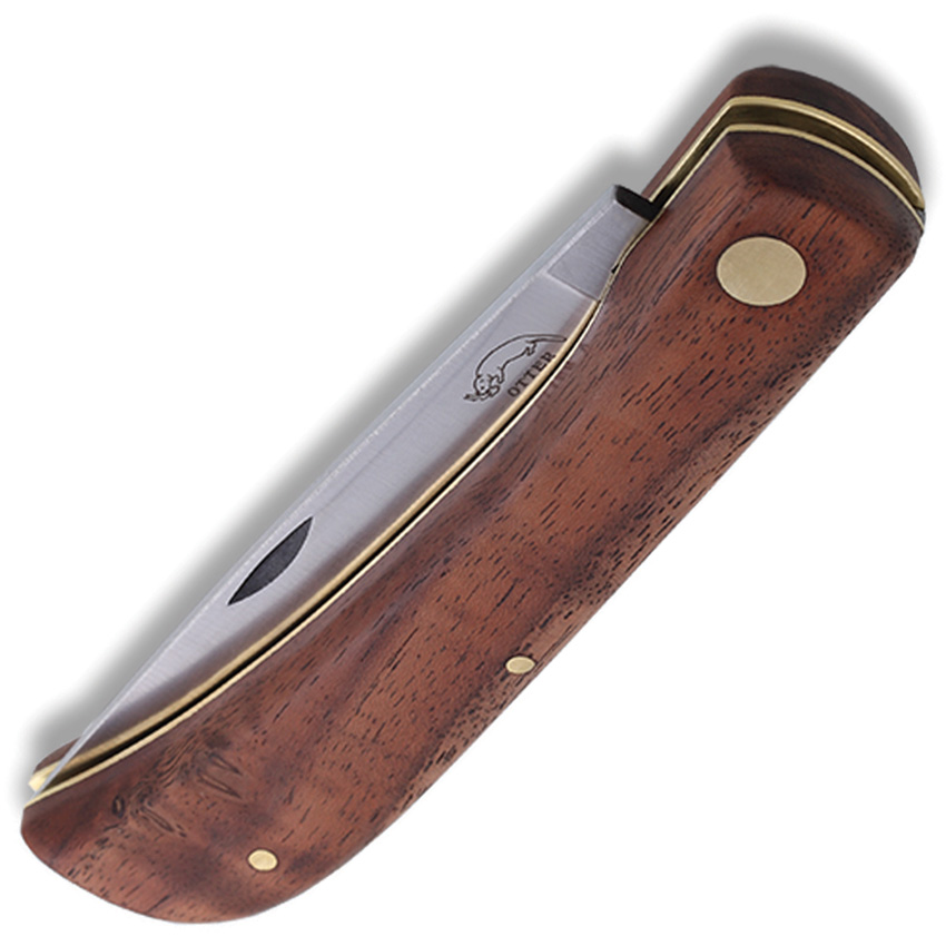 4.5″ (11.43cm) closed. Satin finish stainless blade(s). Slip joint. Root walnut wood. Hang packaged.