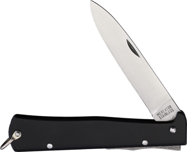 4.25″ (10.8cm) closed. 3.25″ (8.26cm) satin finish stainless blade. Black stainless handle. Bail. Hang packaged.