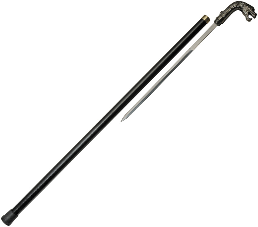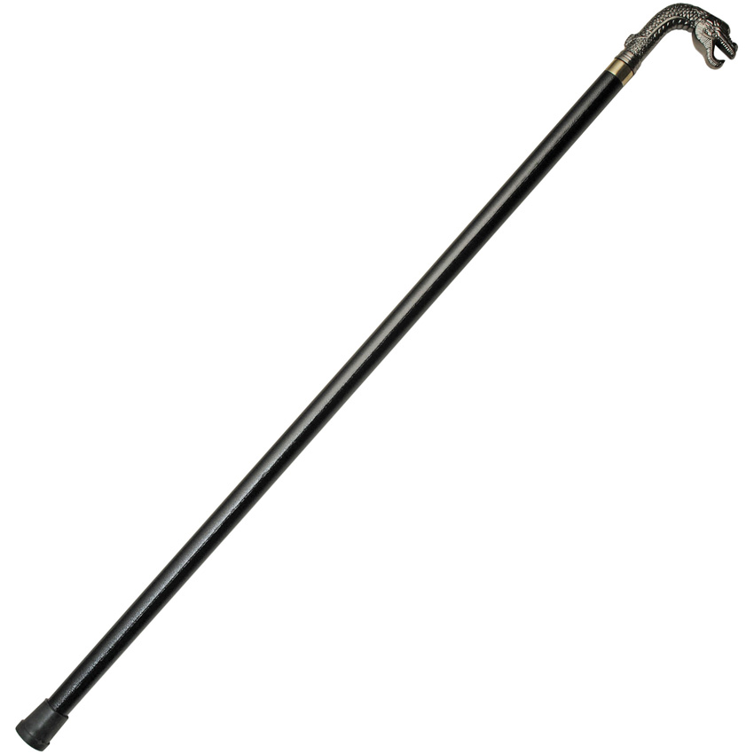 39″ (99.06cm) overall. 17″ (43.18cm) satin finish stainless blade. Metal alloy dragon-shaped handle. Removable blade. Aluminum shaft with rubber foot. Boxed.