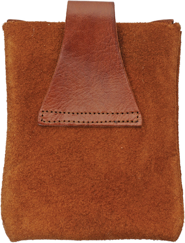 Dimensions: 7″ x 5″. Leather cross strap serves as lock. Belt loop. Suede construction. Color: Brown. Bagged.