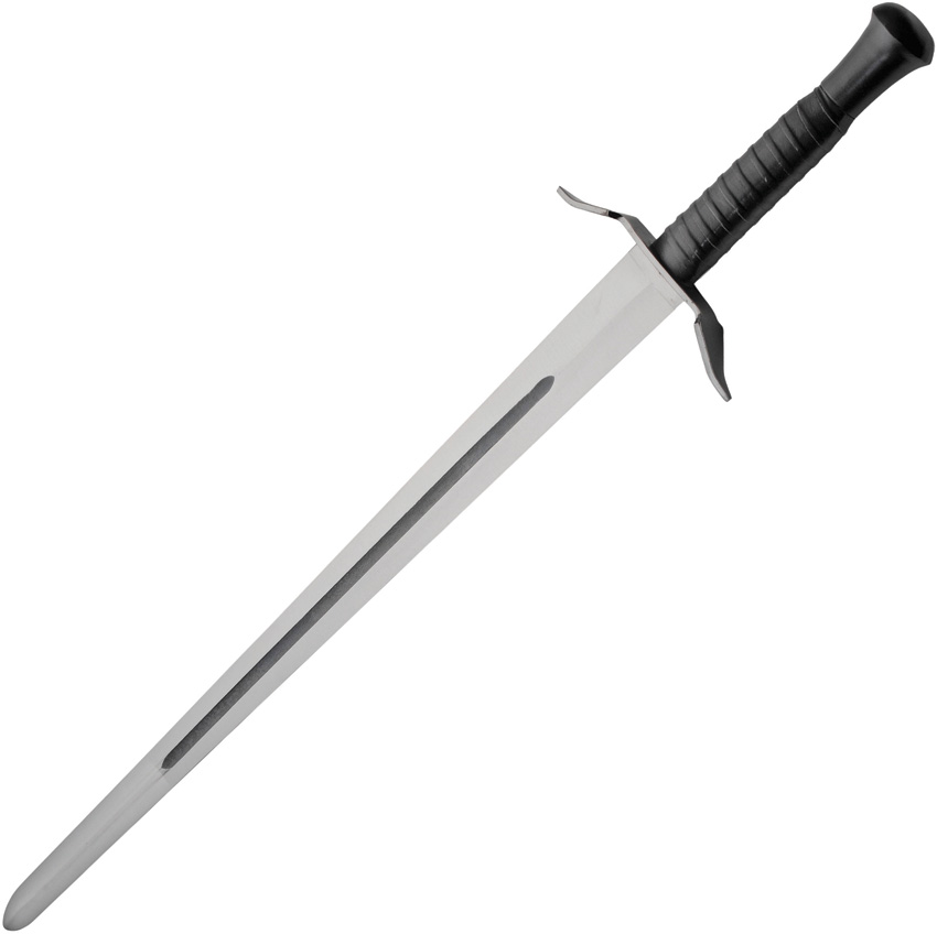 37.25″ (94.62cm) overall. 29.75″ (75.57cm) satin finish spring steel blade. Black leather wrapped handle. Steel guard. Black leather belt sheath. Boxed.
