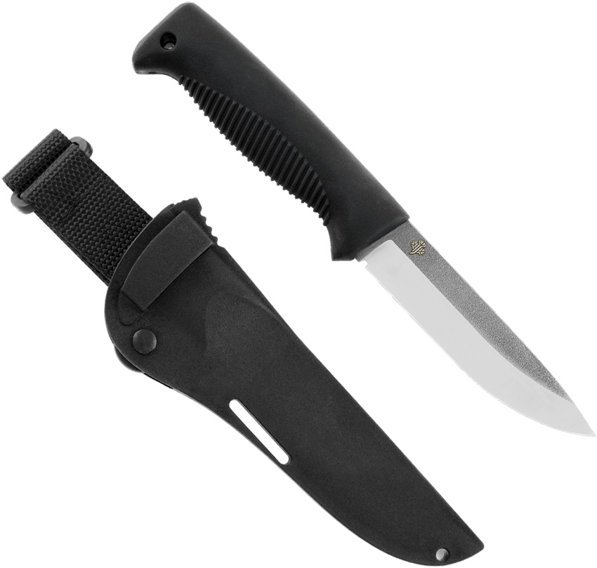 9.63″ (24.46cm) overall. 4.63″ (11.76cm) satin finish Bohler N690 stainless blade. Black TPE handle. Lanyard hole. Black composite MOLLE compatible belt sheath. Boxed with hanging tab.