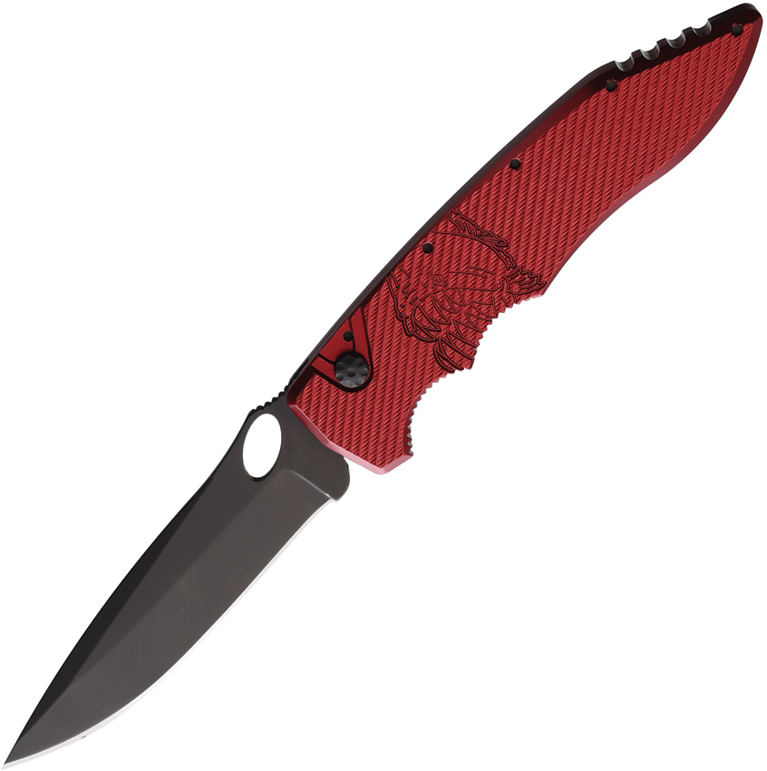 Automatic opening. 4.25″ (10.8cm) closed. 3.5″ (8.89cm) black oxide coated CPM S30V stainless spear point blade. Red aluminum handle. Pocket clip. Thumb pull. Boxed.