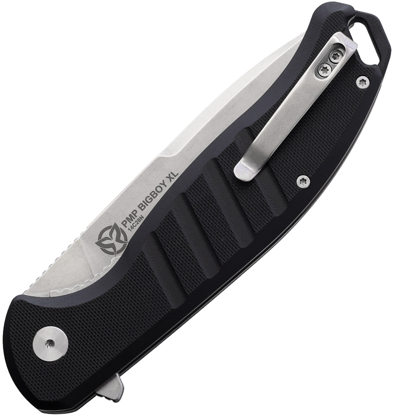 5.75″ (14.61cm) closed. 4.25″ (10.8cm) stonewash finish 14C28N Sandvik stainless spear point blade. Black G10 handle. Extended tang. Lanyard hole. Pocket clip. Boxed.