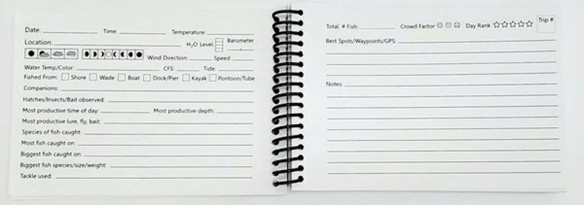 Lay-flat spiral binding. 150 side by side pages. 299 writing/data prompts. Space for journal style writing and additional notes. Trout cover. Bulk packed.