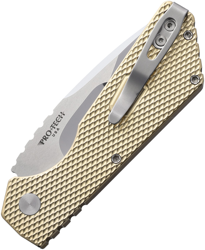 Automatic opening. 3.88″ (9.86cm) closed. 2.88″ (7.32cm) MagnaCut steel blade. Bronze textured aluminum handle. Mike Irie mirror compound blade. Mother of Pearl button. Serialized limited edition. Boxed.