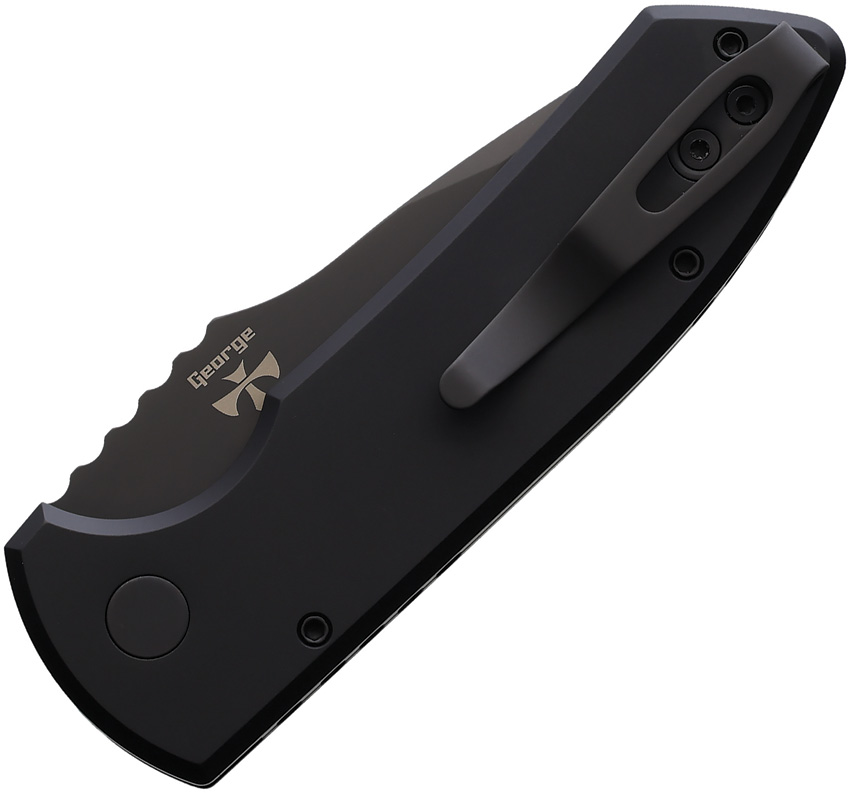 Automatic opening. 3.88″ (9.86cm) closed. 2.75″ (6.99cm) black DLC coated S35VN stainless drop point blade. Black anodized aluminum handle. Pocket clip. Boxed.