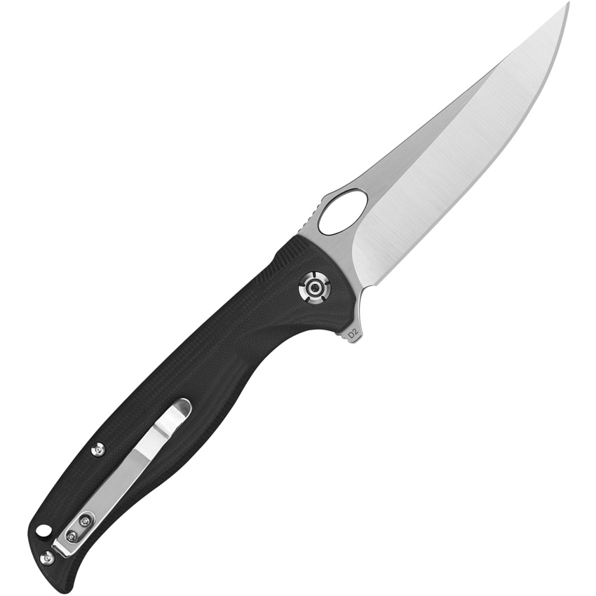 5″ (12.7cm) closed. 4″ (10.16cm) satin finish D2 tool steel blade. Black G10 handle. Extended tang. Thumb pull. Lanyard hole. Pocket clip. Boxed.