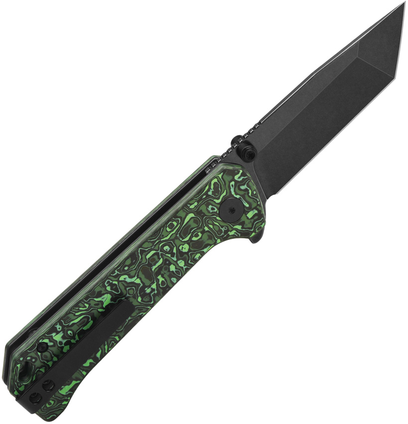 4.25″ (10.8cm) closed. 3″ (7.62cm) black stonewash finish S35VN stainless tanto blade. Green carbon fiber handle. Extended tang. Lanyard hole. Pocket clip. Thumb stud. Boxed.
