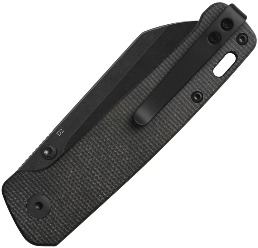 4″ (10.16cm) closed. 3″ (7.62cm) black stonewash finish D2 tool steel sheepsfoot blade. Dark brown micarta handle. Thumb stud. Lanyard hole. Pocket clip. Boxed.