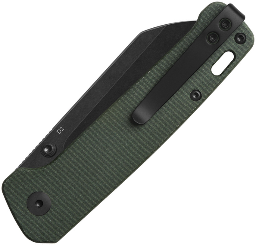 4″ (10.16cm) closed. 3″ (7.62cm) black stonewash finish D2 tool steel sheepsfoot blade. Green micarta handle. Thumb stud. Lanyard hole. Pocket clip. Boxed.