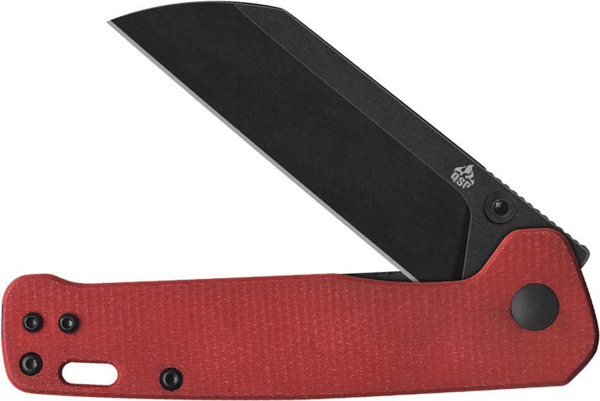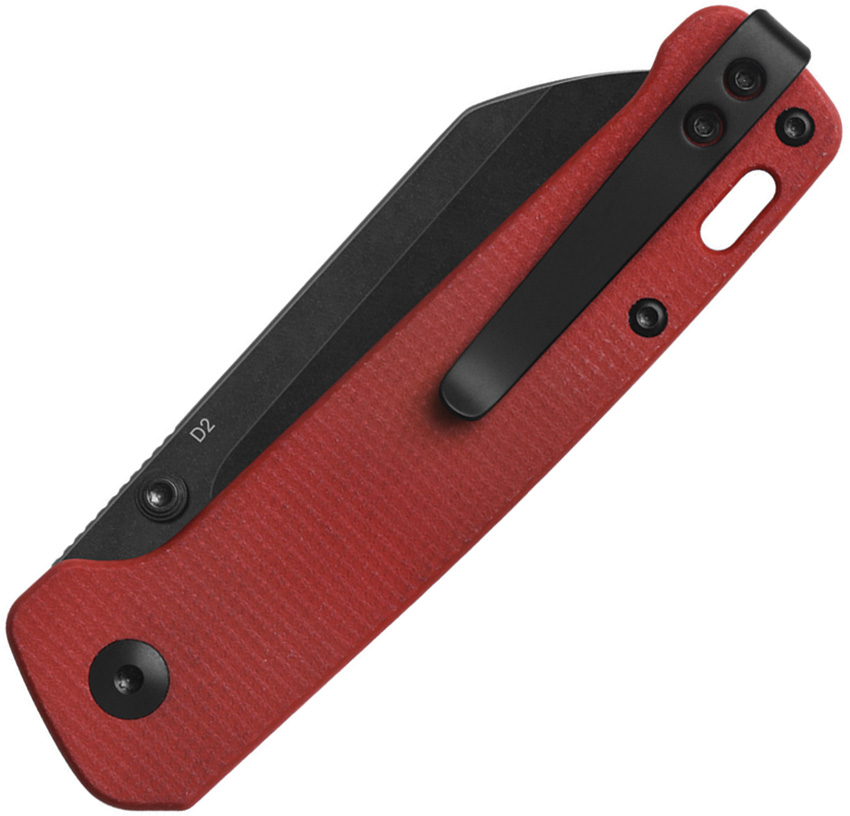 4″ (10.16cm) closed. 3″ (7.62cm) black stonewash finish D2 tool steel sheepsfoot blade. Red micarta handle. Thumb stud. Lanyard hole. Pocket clip. Boxed.