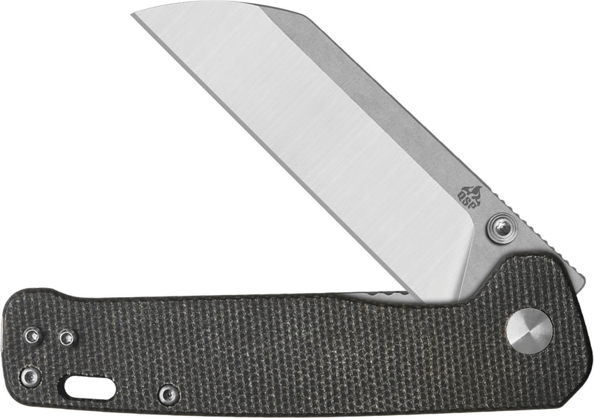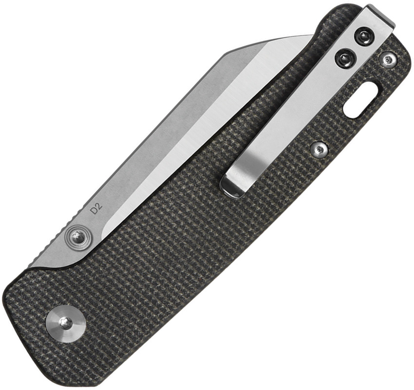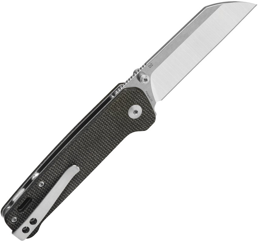 4″ (10.16cm) closed. 3″ (7.62cm) stonewash and satin finish D2 tool steel sheepsfoot blade. Dark brown micarta handle. Thumb stud. Lanyard hole. Pocket clip. Boxed.
