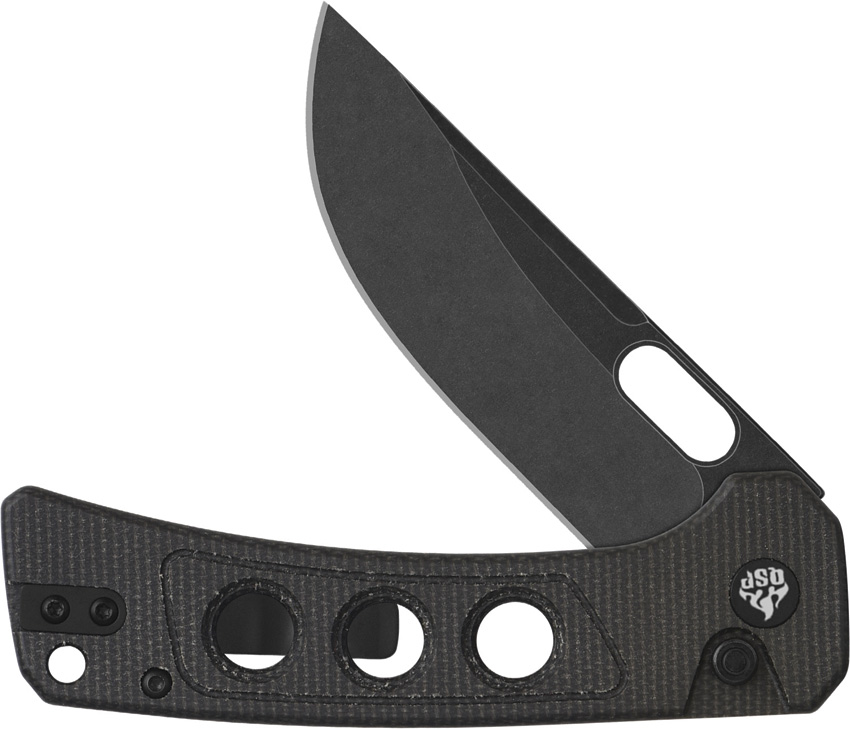 4.25″ (10.8cm) closed. 3.25″ (8.26cm) black stonewash finish 14C28N Sandvik stainless blade. Dark brown micarta handle. Extended tang. Lanyard hole. Pocket clip. Thumb pull. Boxed.