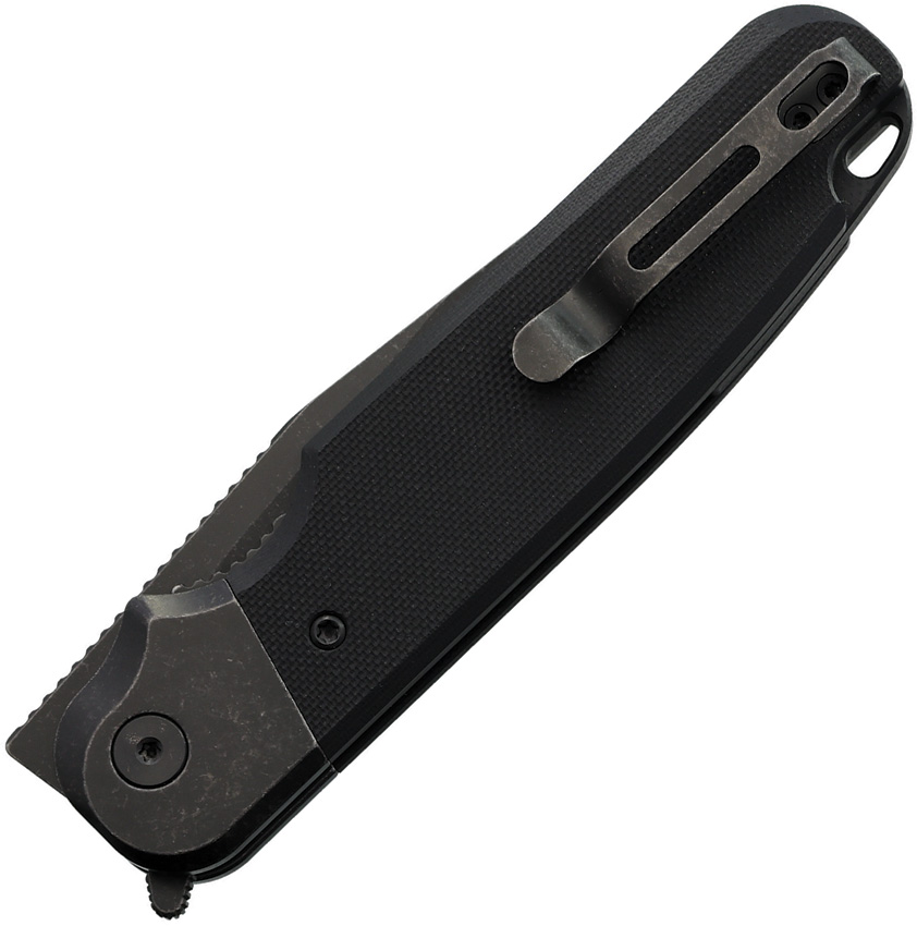 4.63″ (11.76cm) closed. 3.63″ (9.22cm) black stonewash finish VG-10 stainless clip point blade. Black G10 handle. Stainless bolster(s). Extended tang. Lanyard hole. Pocket clip. Boxed.
