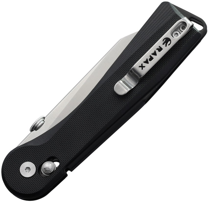 5″ (12.7cm) closed. 3.63″ (9.22cm) satin finish VG-10 stainless reverse tanto blade. Black G10 handle. Thumb disk. Lanyard hole. Pocket clip. Boxed.