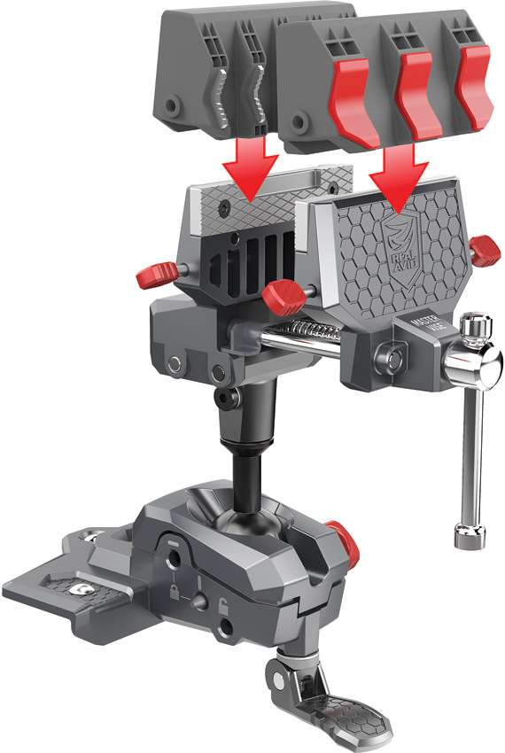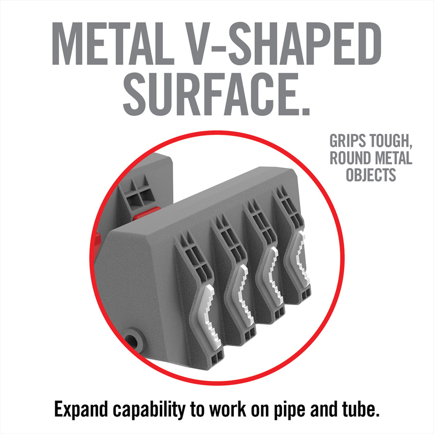 Steel side applies the ultimate vise-like grip. Reversible jaw sleeves. Upgraded gripping vise jaws for securing cylindrical objects. Soft, interlocking jaws secure gripping and torque power. Rubberized V-shaped surface. Non-marring and heat resistant. Boxed with hanging tab.