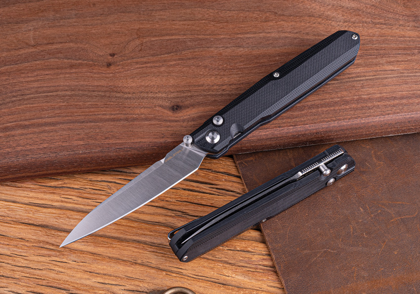 4.5″ (11.43cm) closed. 3.5″ (8.89cm) satin finish 14C28N Sandvik stainless blade. Black G10 handle. Thumb stud. Pocket clip. Boxed.