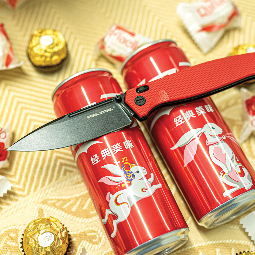 4.63″ (11.76cm) closed. 3.63″ (9.22cm) black oxide coated VG-10 stainless blade. Red and black G10 handle. Thumb stud. Pocket clip. Boxed.