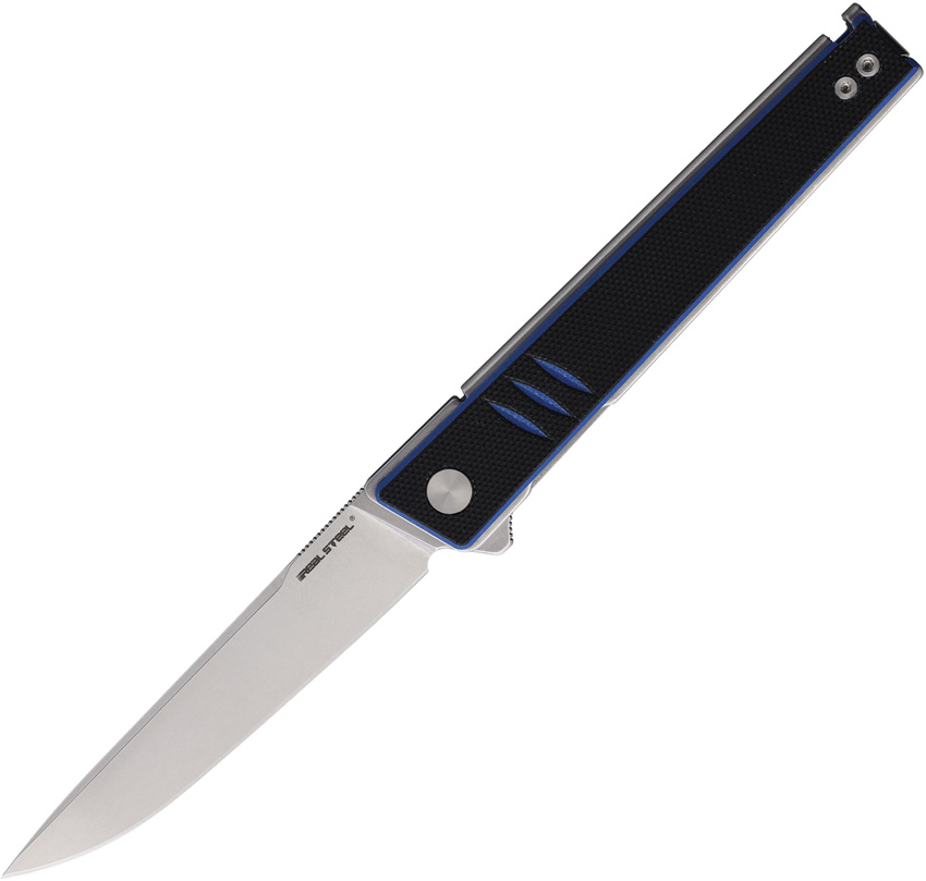 4.5″ (11.43cm) closed. 3.5″ (8.89cm) stonewash finish 14C28N Sandvik stainless blade. Black and blue G10 handle. Extended tang. Pocket clip. Boxed.