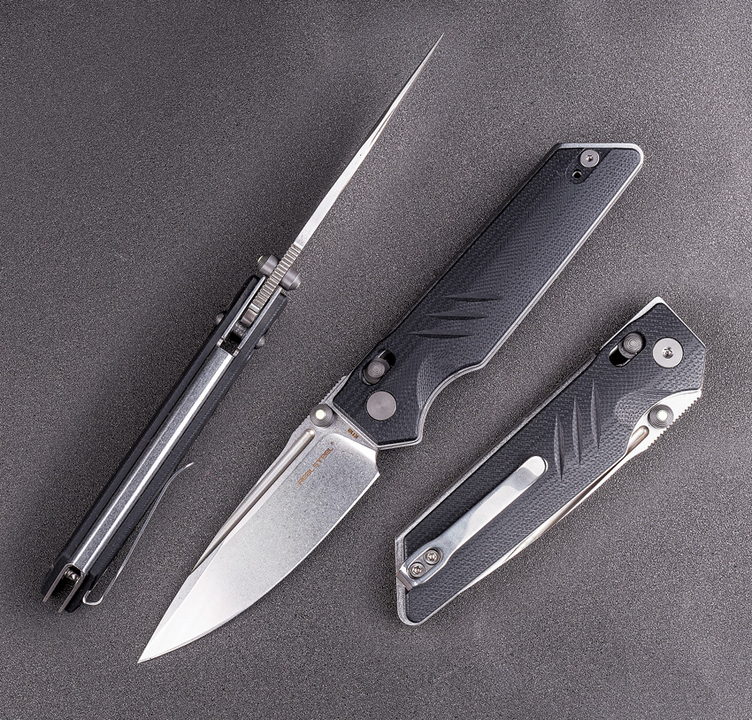 4.13″ (10.49cm) closed. 3.25″ (8.26cm) stonewash finish Bohler K110 stainless blade. Black G10 handle. Pocket clip. Thumb stud. Boxed.
