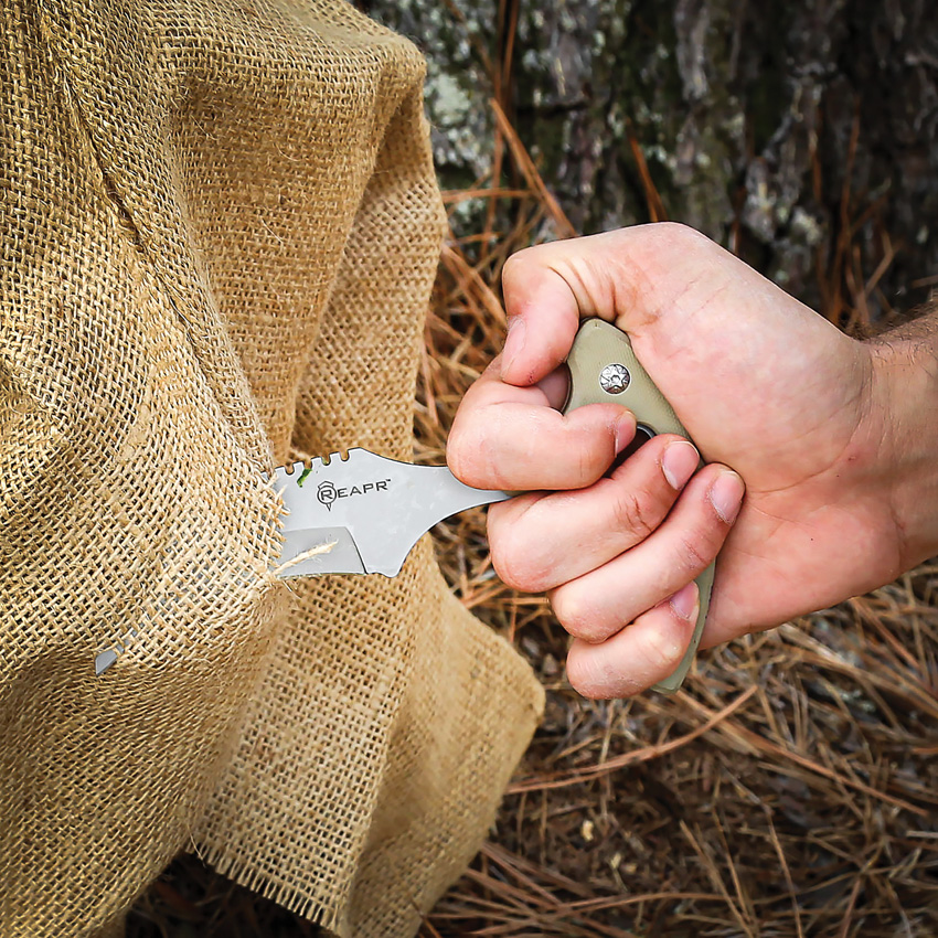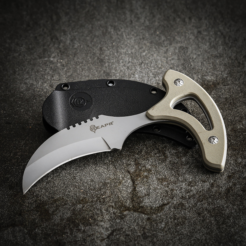 6.75″ (17.15cm) overall. 3″ (7.62cm) satin finish 420 stainless curved blade. Green G10 handle. Full tang. Black injection molded belt sheath with clip. Clam packed.