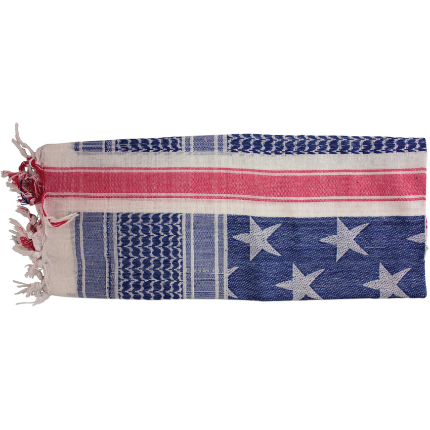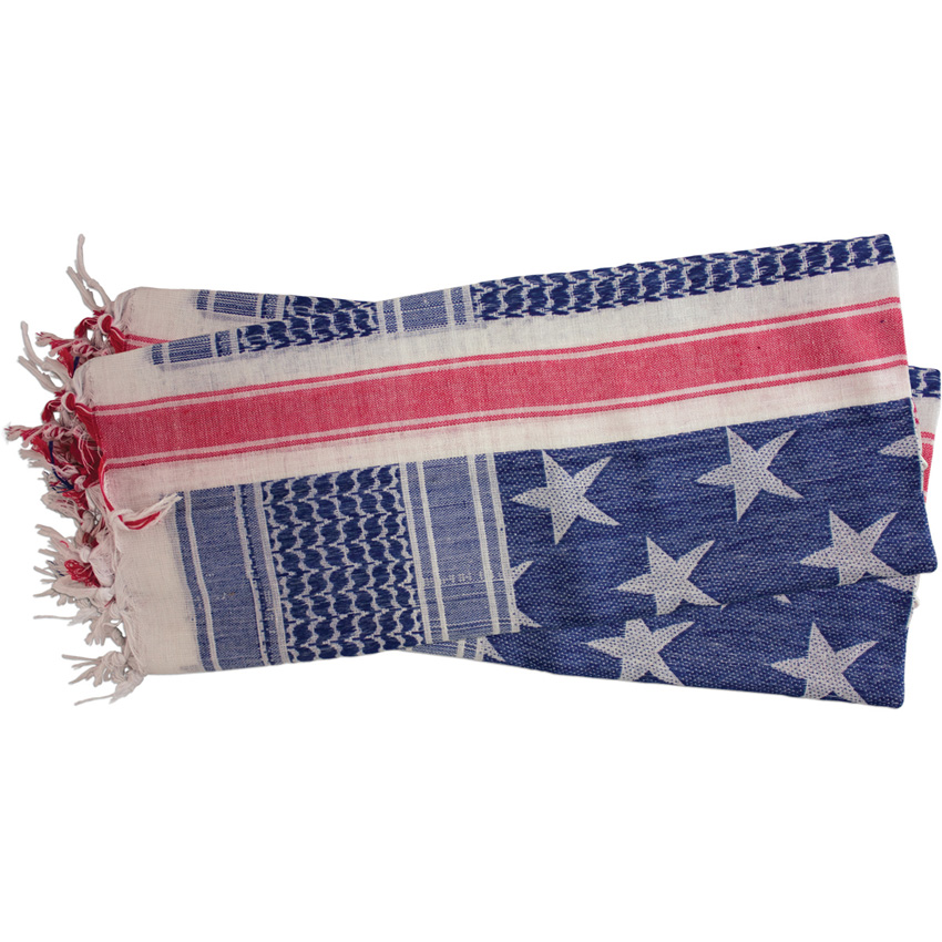 Dimensions: 42″ x 42″. Multi-function usage. Used by U. S. Military. Weight: 6.5 oz. Color: Red, white, and blue with USA flag pattern. Cotton construction. Hang packaged.