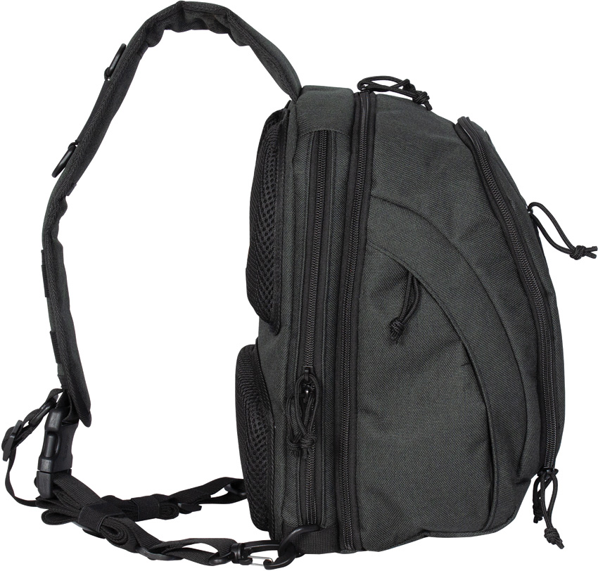 Dimensions: 9″ x 13″ x 3″. 15.5 liters capacity. Foam padded walls. Slip pocket accommodates an iPad or other popular tablet. Rear compartment accepts CCW accessories. Adjustable ambidextrous strap. Collapsible water bottle pocket on each side. Zippered organizer pocket on front. Dense padded strap and back panel. 600D polyester construction. Color: Black. Bulk packed.