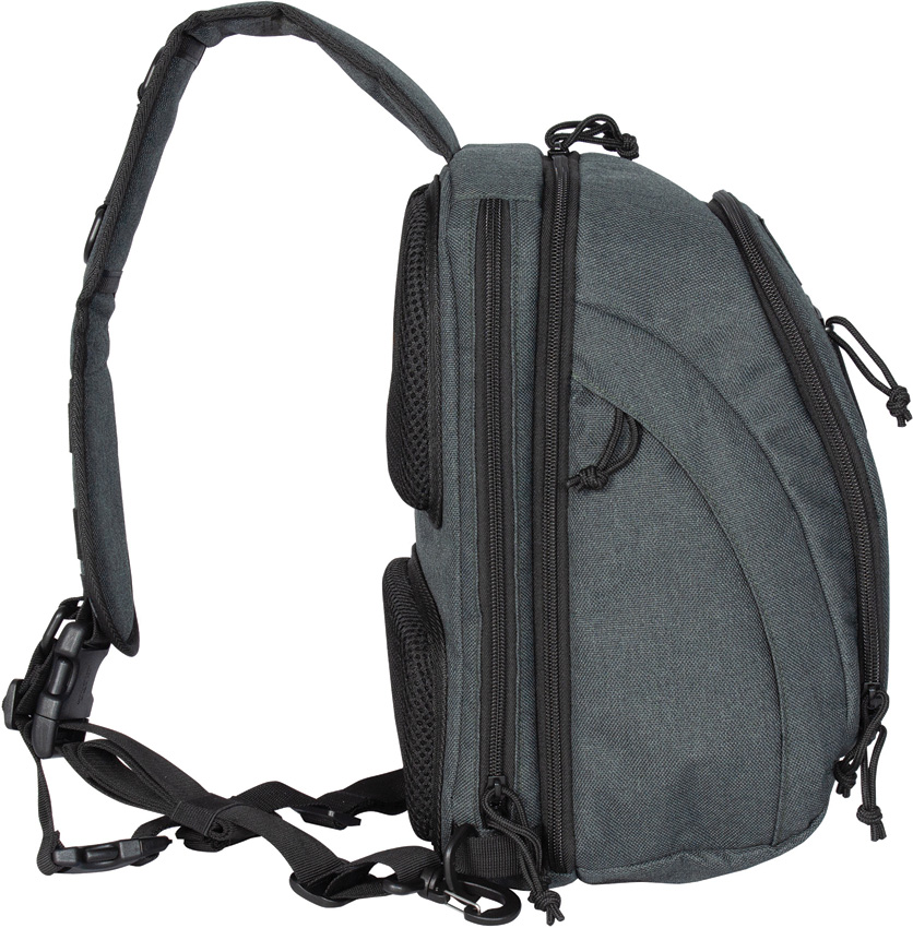 Dimensions: 9″ x 13″ x 3″. 15.5 liters capacity. Foam padded walls. Slip pocket accommodates an iPad or other popular tablet. Rear compartment accepts CCW accessories. Adjustable ambidextrous strap. Collapsible water bottle pocket on each side. Zippered organizer pocket on front. Dense padded strap and back panel. 600D polyester construction. Color: Charcoal gray. Bulk packed.