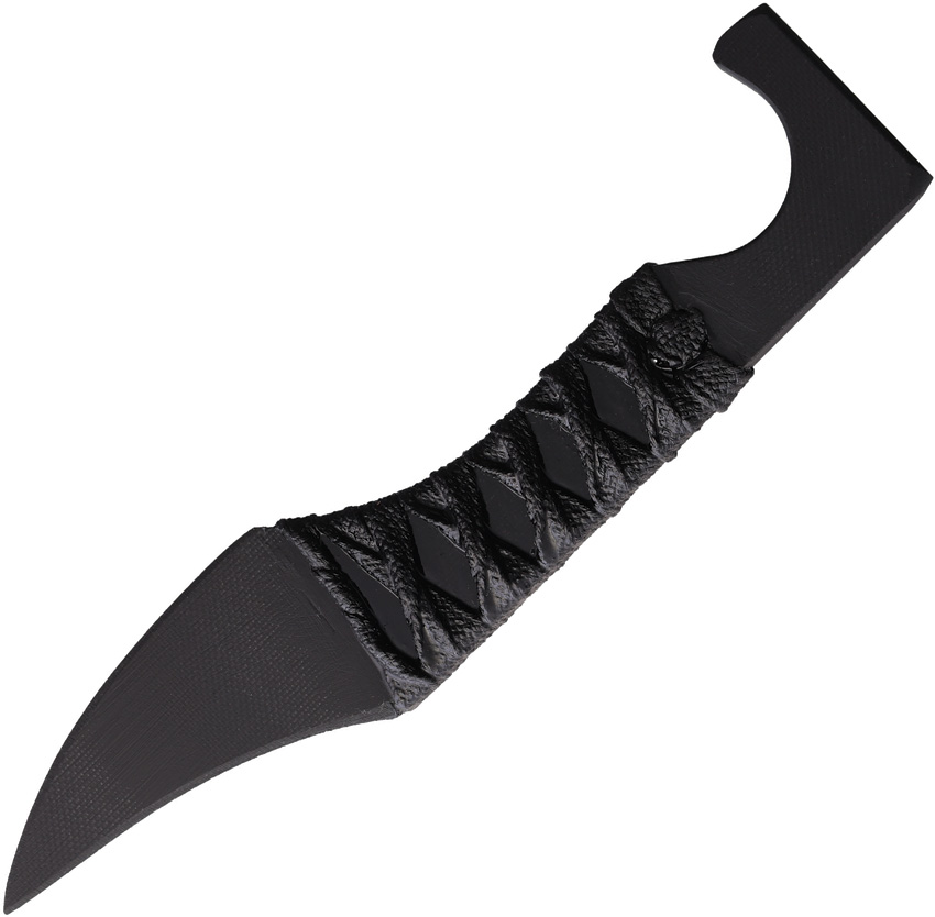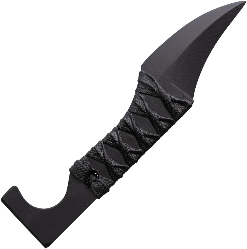 7″ (17.78cm) overall. 3″ (7.62cm) blade. Black G10 construction. Epoxy coated hemp twine Tsukomaki wrapped handle. Due to their handmade qualities, please allow for slight deviation in OAL and weight. Black Boltaron belt sheath. Bagged.
