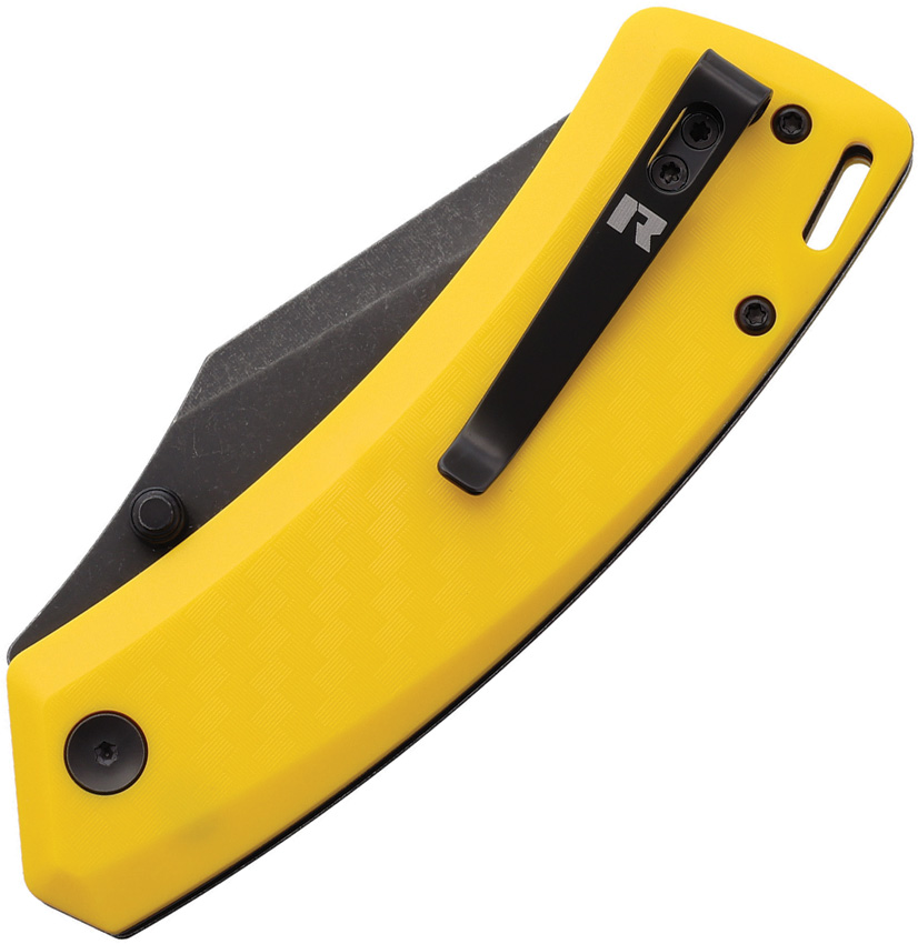 4.38″ (11.13cm) closed. 3″ (7.62cm) black stonewash finish 4Cr13MoV stainless blade. Yellow FRN handle. Thumb stud. Lanyard hole. Pocket clip. Boxed.