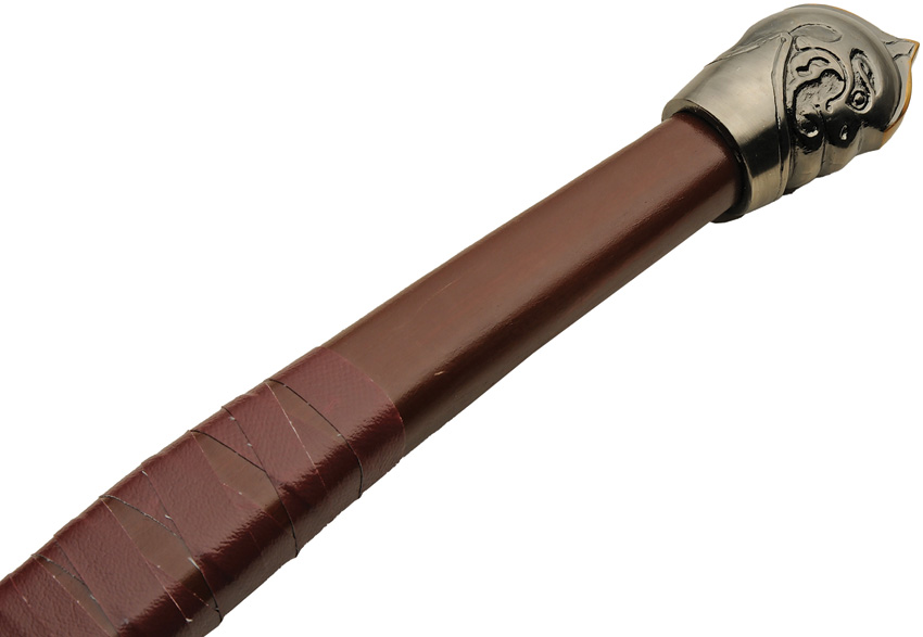 40″ overall. 13.75″ overall black finish stainless axe head with 11″ cutting edge and Viking rune artwork. Ash wood handle. Brown leather sheath. Boxed.