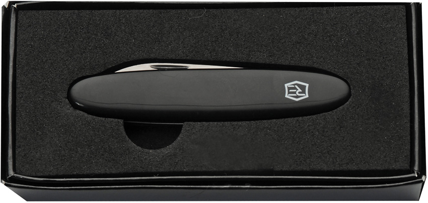 3.25″ (8.26cm) closed. Satin finish 420 stainless serrated large and small pen blades. Black ABS handle.